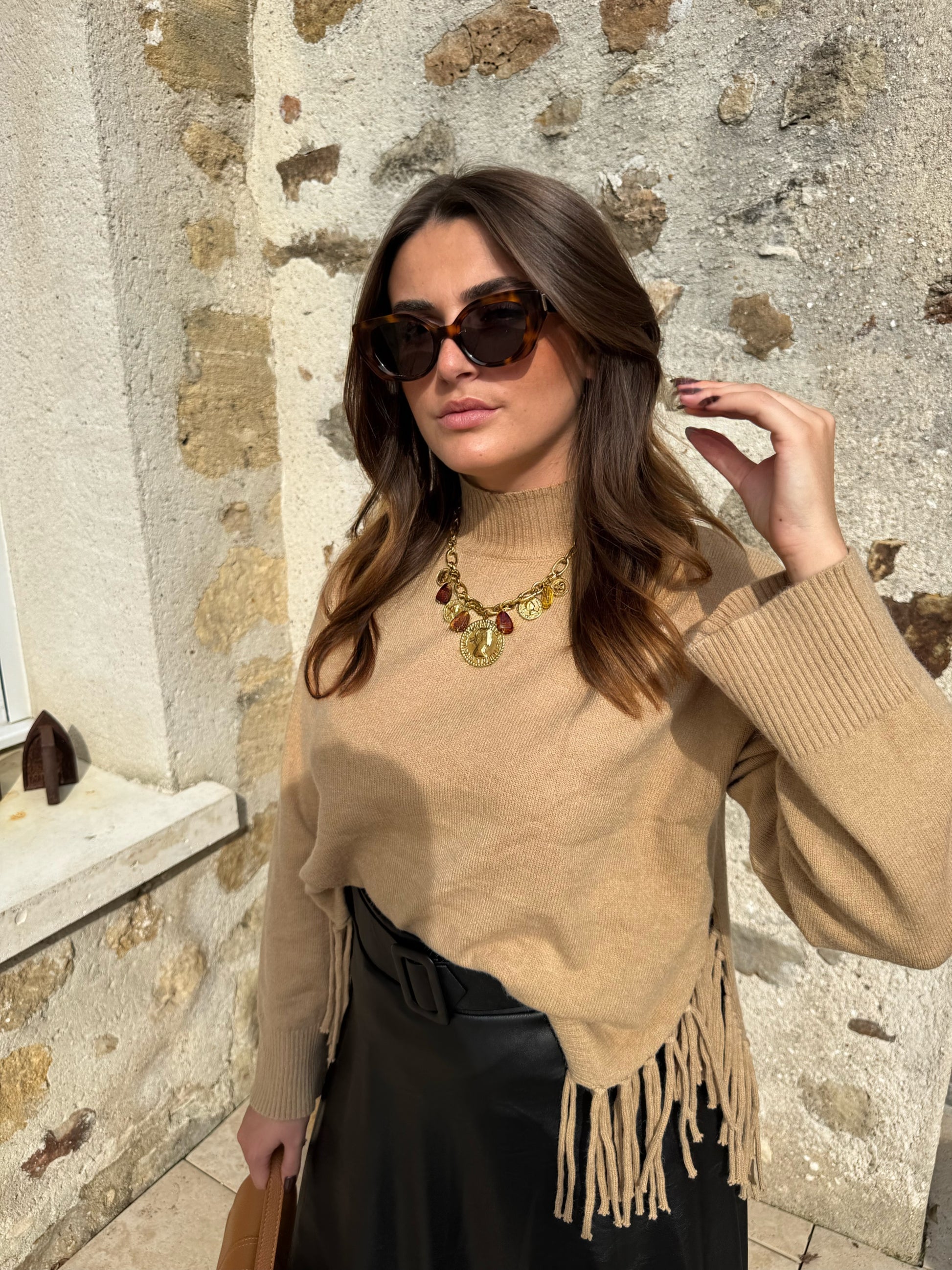 Pull à franges « Bill » camel